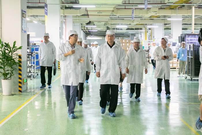 On August 22, accompanied by Yi Wanchun, general manager, Yang Jinke, deputy general manager of East China Netcom, Gu Pingping, manager of Taicang Department of Legal Affairs in the whole course, Han Song, deputy secretary of Xi'an Municipal Committee and secretary of the Municipal Committee of Politics and Law, Wang Jianguo, the mayor of Taicang city, department leader Shi Yanping and persons chiefly held responsible of the Municipal Development and Reform Commission conducted investigation in East China Netcom (Taicang). Secretary Han Song and his party visited the Landscape Avenue and inquired about the overall operation of the company in detail. Subsequently, the delegation visited the automation workshop and SMT workshop of the company, and secretary Han Song gave his warm condolences and expressed his strong concern to employees from Zhouzhi county of in Xi'an province. He also expressed his hope that the exchange of resources, supply and demand and complementary advantages between the two places can be realized as soon as possible, so as to promote the exchange and docking of excellent enterprises, technology and talents between the two places, boost the transformation and upgrading of industries, and truly realize resource sharing, complementary of advantages, information exchange and win-win cooperation.