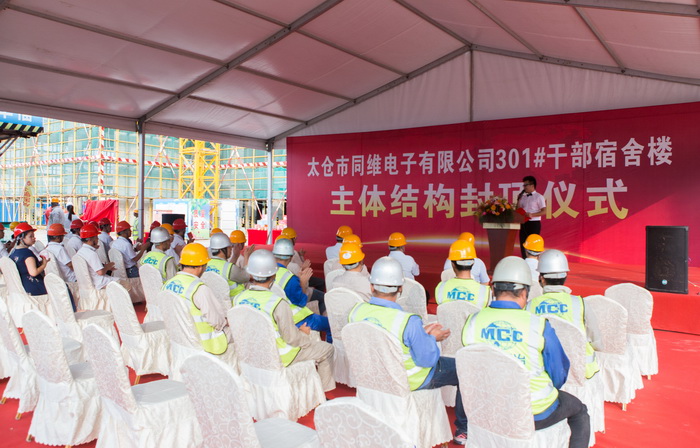 In the afternoon of July 28, we observed the grand opening of the completion ceremony of principal part of Taicang T&W #301 Cadres Dormitory Building. The company’s leaders, Wang Dawei, Long Xiaojing, Yang Wenliang, Xu Xin, Wang Hui and the developer’s representatives attended the ceremony and took group photos.