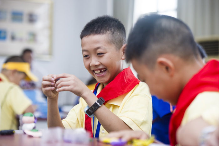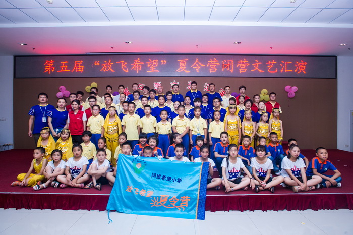 After completion of the Camp Closing Ceremony, two camps held camp closing art performance, and staff spontaneously watched the performance. Each school gave their own unique performance show, or exotic dance, or instrument performance, which expressed feelings of children. What is worth mentioning is that staff of Xinqiao performed magic and interacted with children, warm-up performance given by Aite Philharmonic Society kept us being touched, and autistic children subsidized by the company also illustrated “We are happy because we have you all the way” with their acts.