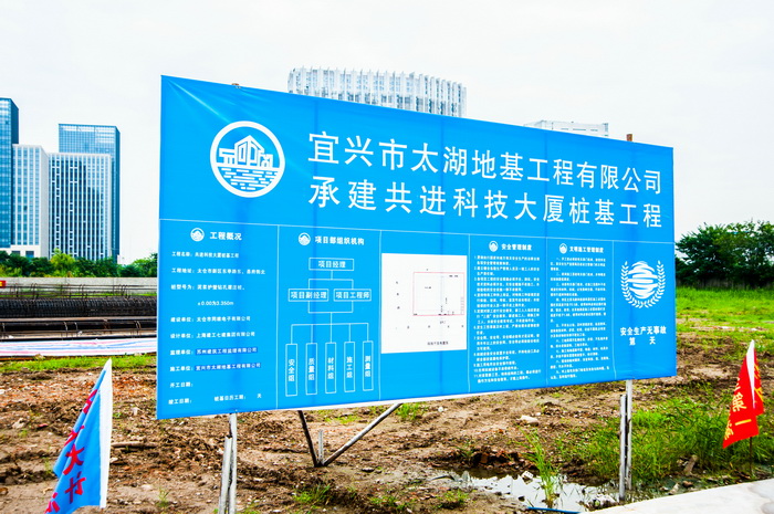 At 08:08 on September 8, test pile of Gongjin Science and Technology Building Project located in downtown of Taicang City started drilling, and Xu Xin who is Investment Director of Infrastructure Project and representatives of project contractor participated in piling test commencement ceremony.