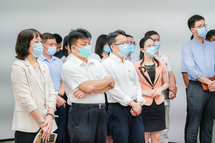 On the morning of September 18, Li Yingzhong, Deputy Secretary of Pingshan District Committee of Shenzhen, Xu Guodong, Member of the Standing Committee of Pingshan District Committee and Director of the Organization Department, led more than 40 people to visit the Pingshan Park of company to investigate party construction work. Long Xiaojing, Deputy Secretary of the Party Committee and Deputy General Manager of the company, Ren Yongqiang, Director of South China Netcom Order Delivery Center and other company leaders received these leaders of Pingshan District and accompanied them to visit the company's party building positions.