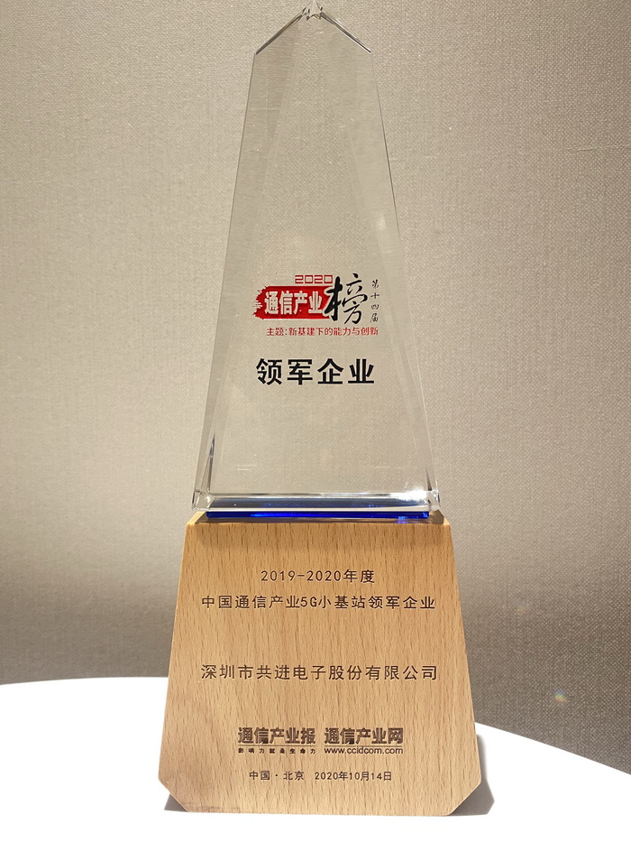 On October 14, 2020, PT Expo China was held, and issued the list of 14th Telecommunications Industry. Gongjin Electronics has won many awards such as "Leading Enterprise of 5G Cells", "Top 100 Service Providers of Communication Equipment Technology" and "Top 30 5G Radio Frequency Industry".
