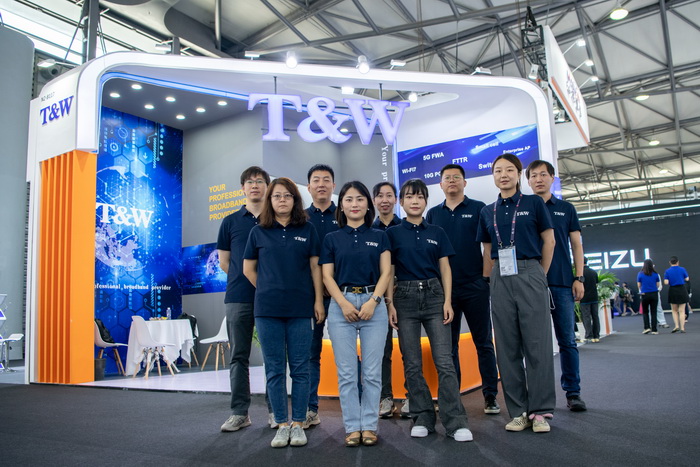 From June 28 to 30, the high-profile 2023 Shanghai Mobile World Congress (MWC) kicked off in Shanghai New International Expo Centre. Shenzhen T&W brought many of its innovative products to the exhibition and exhibited innovative flagship products such as 4G&5G small base stations, optical modules, WiFi6 mature products, WiFi7 leading products, and 5G FWA with great market potential, attracting countless friends and customers to observe, discuss and conduct in-depth business exchanges.