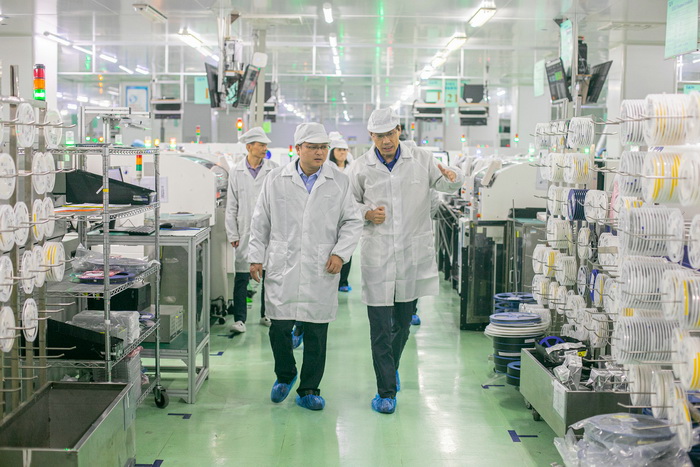 Guided by Deputy General Manager Yang Jinke, Standing Committee Member He, etc. entered the production workshop and made a detailed investigation of the production capacity and technological R&D of the first manufacturing department, the second manufacturing department and about automation equipments. He encouraged the company to continue to give full play to its competition advantages in the area of netcom, speed up production to full capacity and strive to achieve better performance in the fourth quarter.