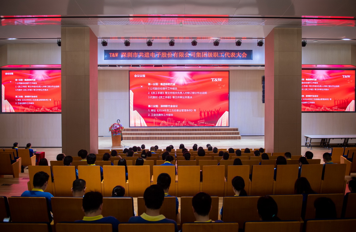 On the afternoon of April 2nd, the employee representative conference of Shenzhen Gongjin Electronics Co., Ltd. (group level) was successfully held in the report hall on the second floor of Building 4 in Pingshan. Long Xiaojing, the deputy general manager of the company, attended the meeting. Leaders at the director level and above and functional department managers attended as nonvoting delegates. More than 200 employee representatives attended the meeting. Video connections were established from Taicang, Shanghai, Haining, Dalian, Xi'an, Jinan and other places.
