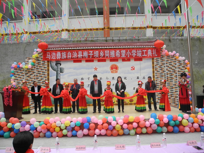 10月29日下午,马边同维希望小学举行竣工典礼仪式,公司董事长汪大维,公司副总经理、同维爱心公益基金会理事长龙晓晶,马边县教育局、关工委和梅子坝乡相关领导等出席了竣工典礼仪式。