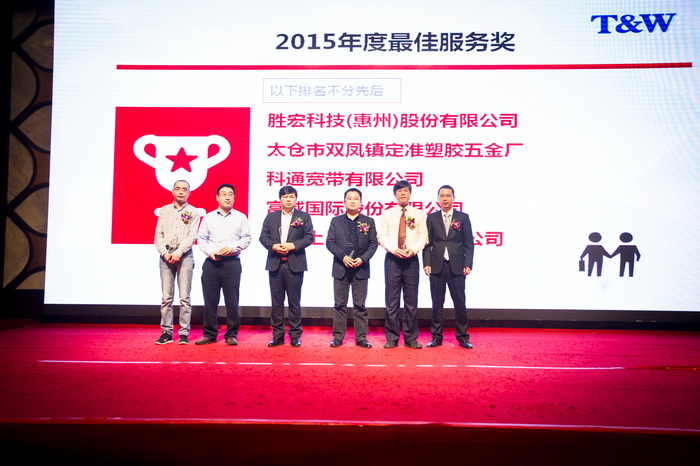 本次大会对2015年度优秀供应商进行了表彰,共有21家供应商获得了“2015年度优秀供应商”;2家“最佳合作伙伴奖”;3家“最佳质量奖”;5家“最佳服务奖”,为了感谢支持我司公益事业的供应商,特颁发了“爱心企业”奖以及9家“战略合作伙伴奖”。现场三名获奖供应商代表发表了获奖感言。