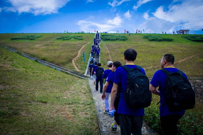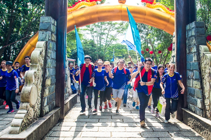 白水寨万级阶梯直抵云霄,一群蓝色同维勇士连缀一片勇攀海拔1088 米险峰,携手并肩,坚持迈向终点。10月23日,“励志南昆山,万级阶坚持登顶,付大努力,吃大辛苦,得大欢喜;拓展白水寨,六小时团队拼搏,不拖一步,不落一人,都是英豪”——太阳成集团tyc33455ccwww2016 广州白水寨励志行盛大举行。873 名同维勇士汇聚白水寨,挑战号称天南第一梯的9999 级阶梯,4099 级到达率为99.76%,9999级到达率为85.41%,同维人不畏艰难,取得骄人成绩。