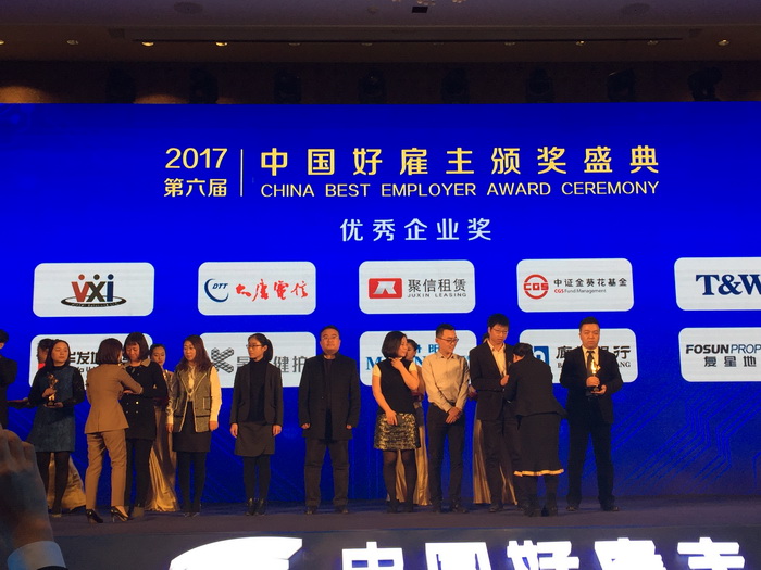 11月23日,由太和顾问主办的“2017(第六届)中国好雇主优秀企业奖”在北京隆重举行,公司凭借多年来在橙色新人专项培养、各级管理干部专项培养及员工关怀等方面的优异表现,在此次评选中荣获第六届“中国好雇主优秀企业奖”,公司副总经理龙晓晶代表公司领取了该奖项。