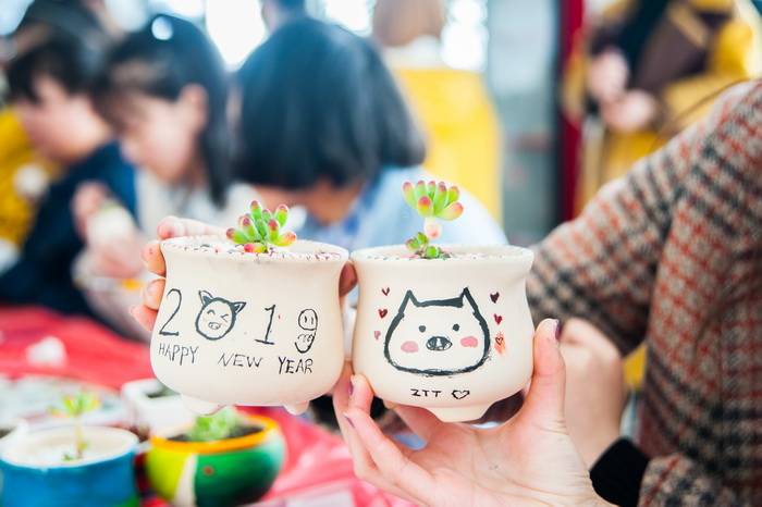 享受完这些惊喜还没完,多肉DIY种植才是今天的压轴大戏,天马行空的想象绘画,漂亮呆萌的小多肉配上自己手工绘画的小花盆,点水施肥后,200盆多肉在女神们的巧手下重获新生。