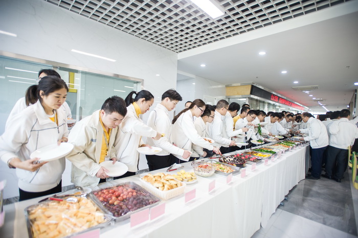 在汪总和唐总带领下,公司董事会任命高管团队和坪山工程负责人集体为搬迁仪式剪彩。在喜庆的鞭炮声中,全体员工面向工厂大门,一起迎接搬迁货车缓缓进场,驶向2号厂房出货台卸下第一批搬迁设备。公司领导龚谱升和谌凯带领大家参观了厂房、员工活动中心、食堂和宿舍。公司在综合楼风味餐厅为大家精心准备了28道自助餐美味,庆祝搬迁仪式。