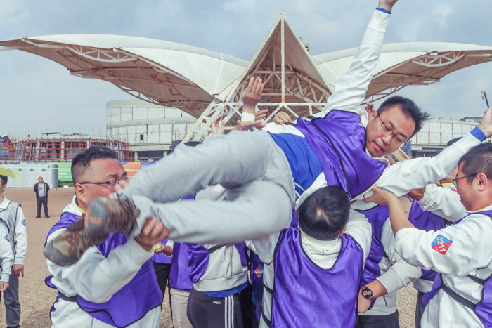 “千足穿行”体现了团队协作与体能素质,虽然在行进中有同事摔倒了,但是没有一个人退出,拍拍身上的土,马上再次出发。“数字华容道”是最强大脑的优秀项目,一个优秀的团队不仅需要健康的体魄,更需要“最强大脑”临危不惧、沉着冷静带领队员走向成功。