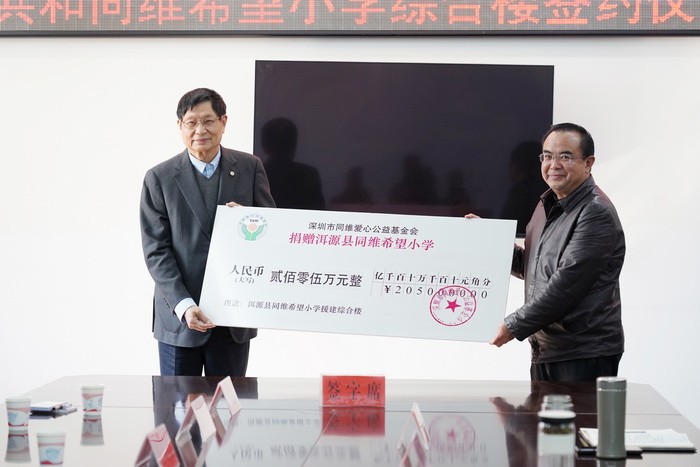 云南省洱源县共和同维希望小学是公司捐建的第四所希望小学。2007年9月,公司捐赠50万与云南省大理实施希望工程办公室、洱源县人民政府签订“资助建校协议书”,捐建洱源县共和同维希望小学。此后,同维爱心公益基金会相继为学校开展基建加建、维护,新建水井、水池,捐赠二层教学综合楼,建设读书长廊,修缮学校门窗,重修教学楼城墙及校园路面,加上此次捐建综合楼,十六年来共计捐资388.5万元。