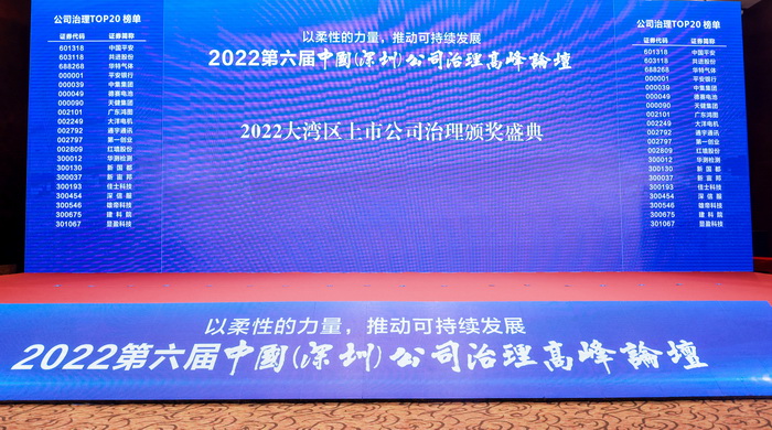太阳成集团tyc33455ccwww荣获2022大湾区上市公司公司治理TOP20