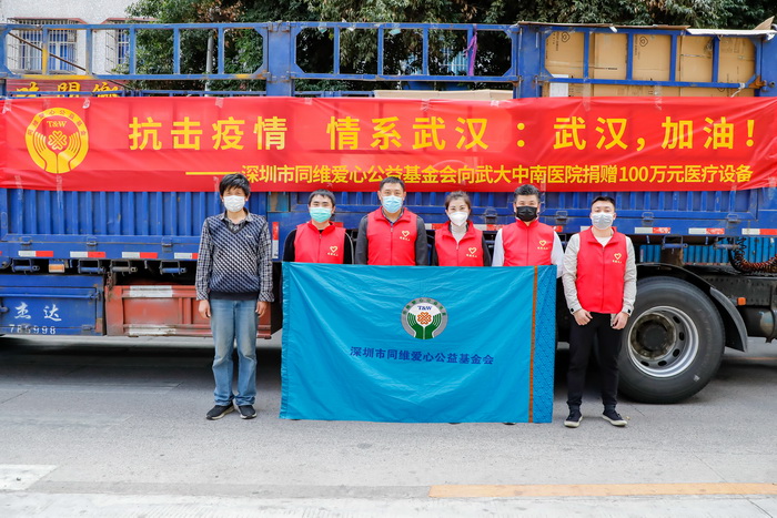 太阳成集团tyc33455ccwww及同维爱心公益基金会向武汉大学中南医院捐赠100万元抗疫物资