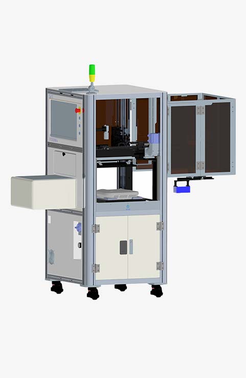 采用高精度SCARA机器人,整机防静电安全可靠,整机采用模块化设计理念,支持多种载具和载具循环,在线扫描PCBA条码功能,支持PCBA阴阳板,支持MES和其它生产系统对接数据交互,可定制的设备外观尺寸